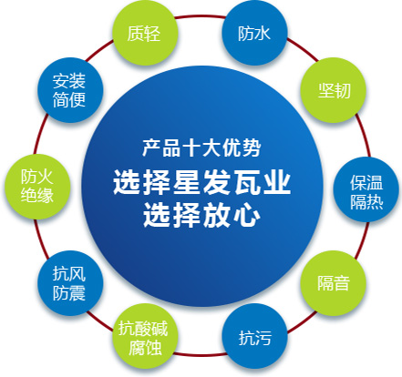 公司主要產(chǎn)品有《星發(fā)牌》合成樹(shù)脂瓦、APVC防腐耐候復(fù)合瓦、APVC發(fā)泡隔熱瓦、PVC半透明瓦、PVC防腐隔熱瓦、PVC防腐瓦、PVC防腐平板、PVC條紋板和ASA/PVC超耐候復(fù)合瓦等產(chǎn)品。產(chǎn)品一經(jīng)推出,已被廣泛應(yīng)用于國(guó)內(nèi)各類平改坡項(xiàng)目和大型工業(yè)項(xiàng)目,遠(yuǎn)銷(xiāo)歐洲、亞洲、美洲和非洲等國(guó)外市場(chǎng),還獲選為廣州亞運(yùn)會(huì)、深圳大運(yùn)會(huì)、四川災(zāi)后重建等工程項(xiàng)目的應(yīng)用產(chǎn)品。公司在不斷創(chuàng)新和改革的基礎(chǔ)上,力求以更好的產(chǎn)品、優(yōu)良的服務(wù),用心、專心服務(wù)好每一個(gè)客戶。